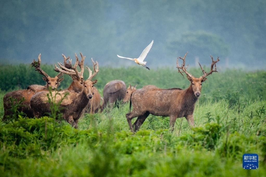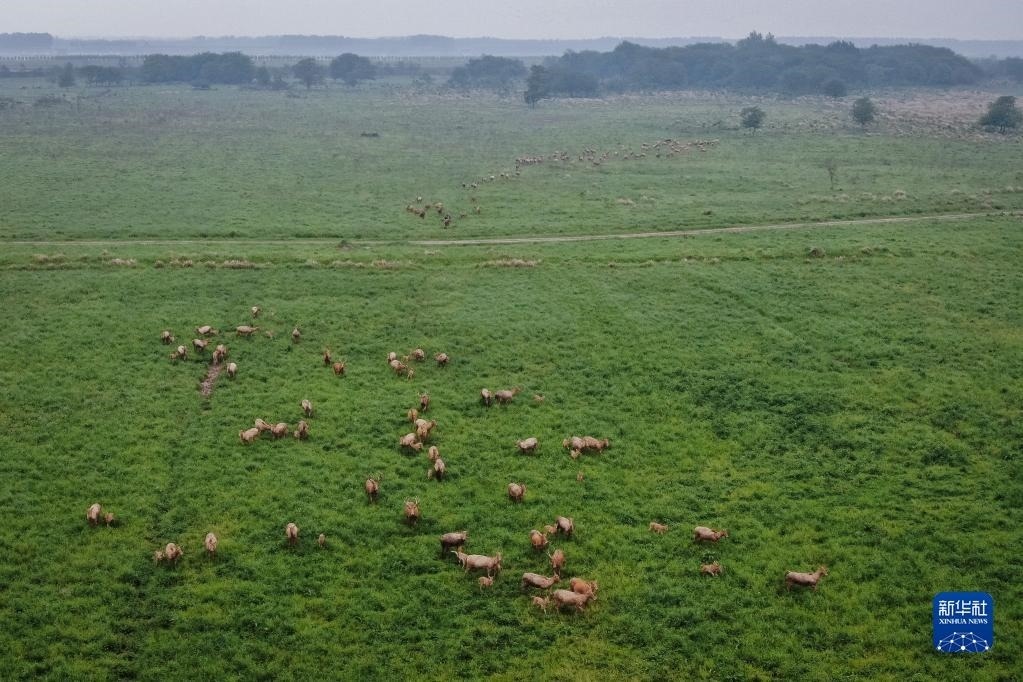石首麋鹿國(guó)家級(jí)自然保護(hù)區(qū)成立于1991年,這里牧草豐富,濕地生態(tài)系統(tǒng)完整。30多年間,麋鹿種群繁衍擴(kuò)散,逐漸形成了保護(hù)區(qū)、東升三合垸、小河楊波坦及湖南洞庭湖4個(gè)小種群,從最初引進(jìn)的64頭發(fā)展到2500余頭,全部實(shí)現(xiàn)自然繁衍,恢復(fù)了野生習(xí)性。