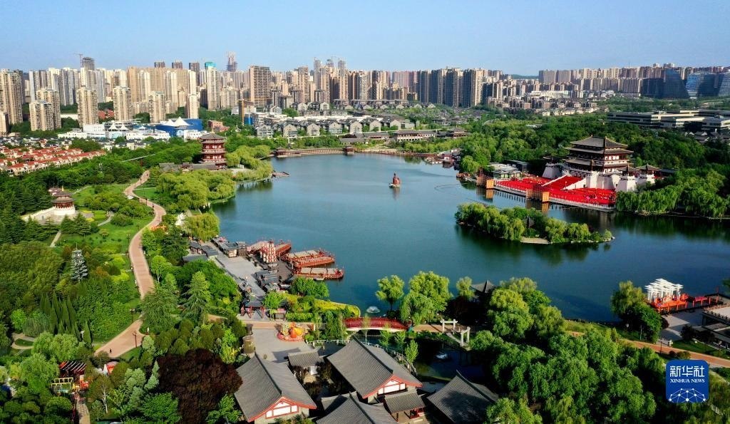 西安大唐芙蓉園(4月25日攝,無人機照片)。