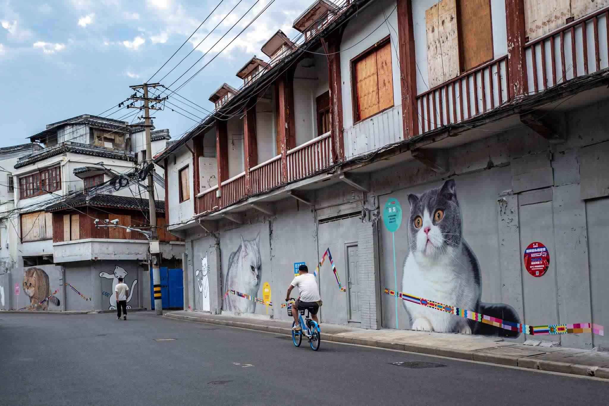 2023年5月4日,上海,方浜中路老街被打造成“外灘貓街”。視覺中國