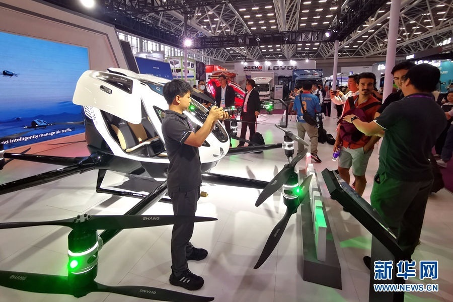 這是廣交會上展示的億航載人和運(yùn)輸無人機(jī)(4月15日攝)。新華網(wǎng) 盧鑒 攝