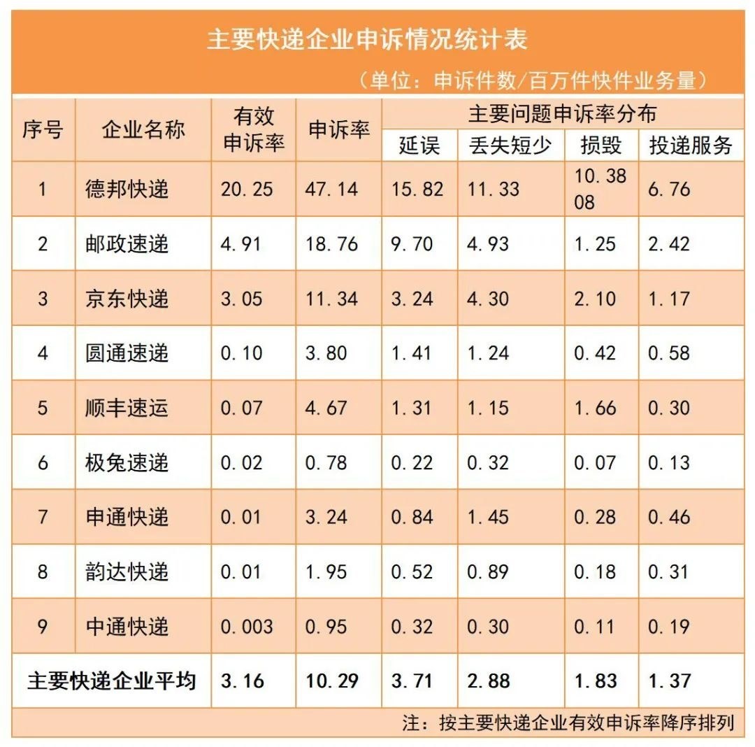 快遞服務(wù)申訴情況