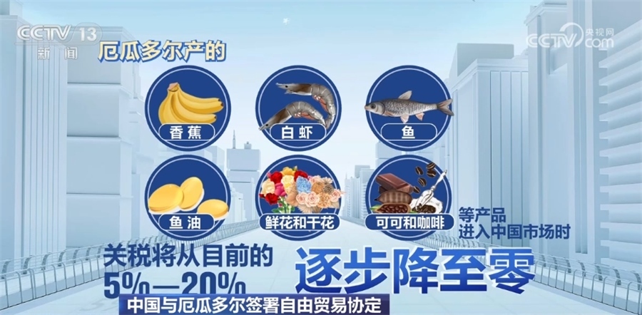 中方實(shí)施零關(guān)稅的產(chǎn)品將全面覆蓋厄瓜多爾的主要出口產(chǎn)品。協(xié)定生效后,厄瓜多爾產(chǎn)的香蕉、白蝦、魚、魚油、鮮花和干花、可可和咖啡等產(chǎn)品進(jìn)入中國市場時(shí),關(guān)稅將從目前的5%—20%逐步降至零。