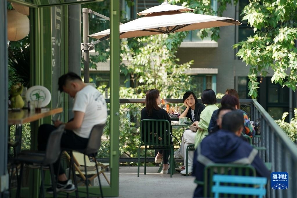 5月11日,人們?cè)谖靼彩醒闼^(qū)三五一一社區(qū)一家咖啡館消費(fèi)休閑。