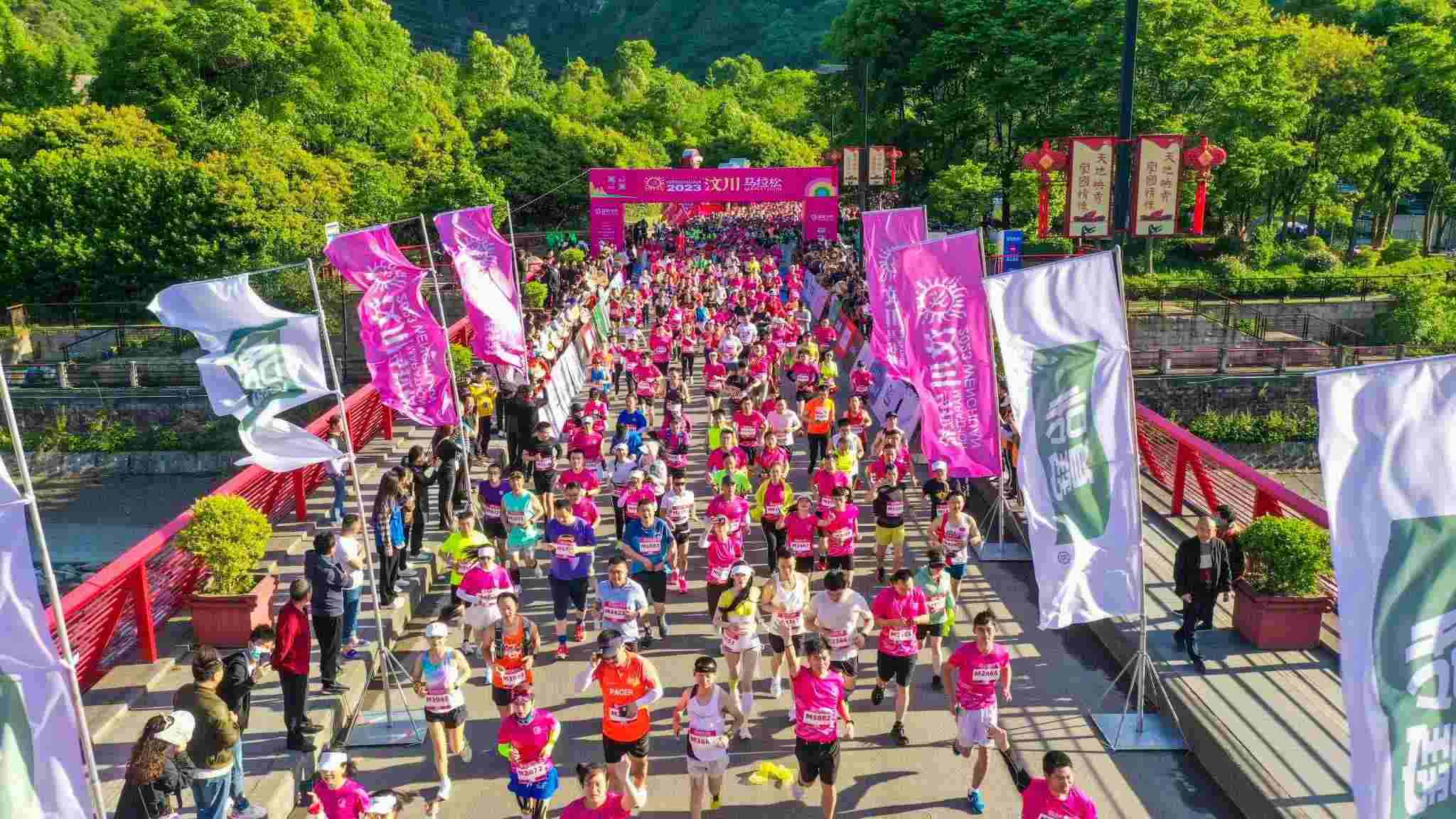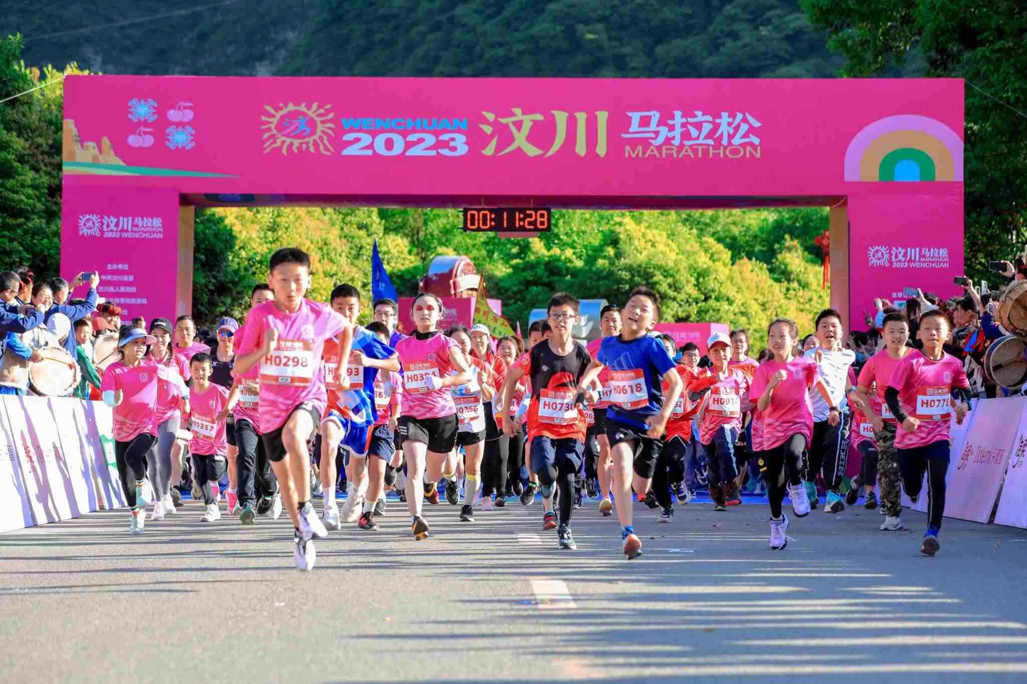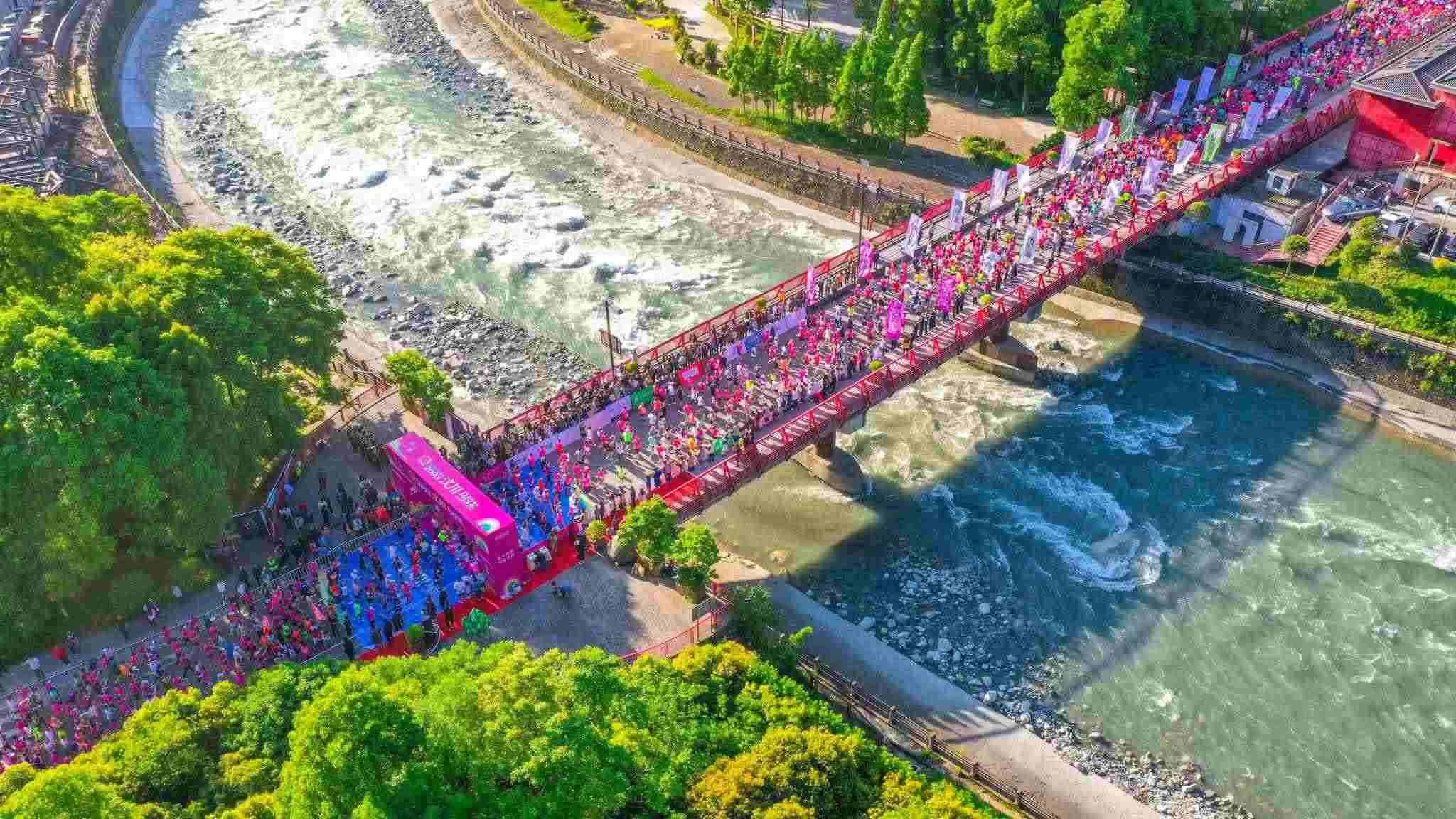 2023年5月13日,四川阿壩,汶川縣第六屆馬拉松在汶川特別旅游區(qū)鳴槍開跑,近萬名跑者參加。視覺中國