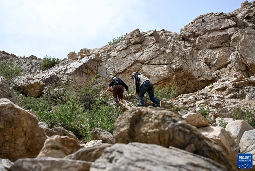5月13日,駝峰(長(zhǎng)城)文物保護(hù)隊(duì)員許繼龍?jiān)谘膊榘⒗谱笃煲惶幨z址。