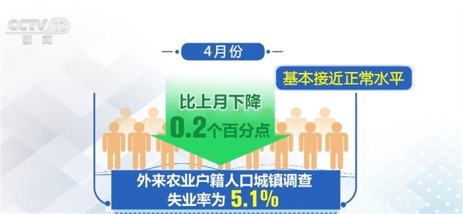 全國城鎮(zhèn)調(diào)查失業(yè)率連續(xù)兩個月下降。4月份,全國城鎮(zhèn)調(diào)查失業(yè)率為5.2%,比上月下降0.1個百分點(diǎn),接近2019年疫情前的統(tǒng)計(jì)水平。