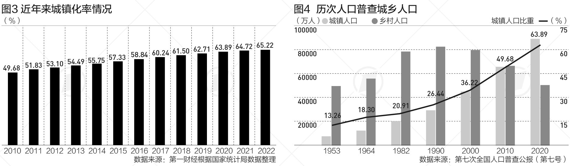 國家統(tǒng)計局數(shù)據(jù)顯示,2022年末城鎮(zhèn)常住人口92071萬人,比上年末增加646萬人;鄉(xiāng)村常住人口49104萬人,減少731萬人;城鎮(zhèn)人口占全國人口比重(城鎮(zhèn)化率)為65.22%,比上年末提高0.50個百分點。