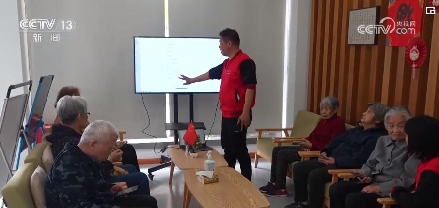 在上海普陀區(qū)長風街道,社區(qū)工作人員正在和外賣平臺工作人員集體培訓老年人用手機APP的“長輩模式”來解決點餐、買菜、買藥等日常生活需要。
