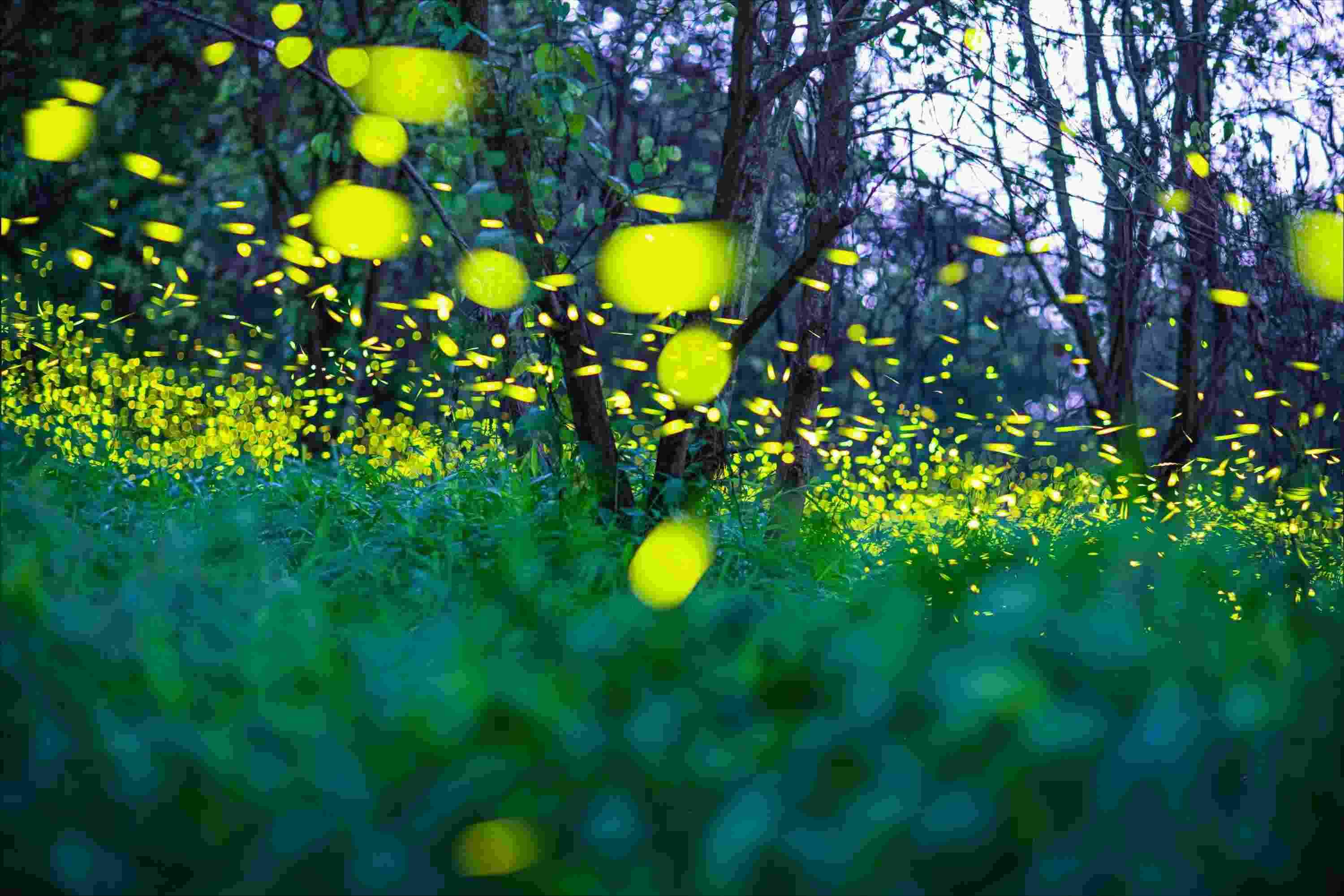 2023年5月15日,廣東佛山,南海區(qū)西樵山景區(qū),螢火蟲在林間飛舞。 視覺中國