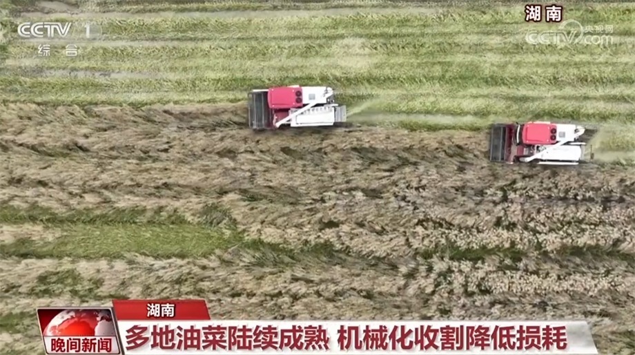 近日,湖南多地的油菜陸續(xù)進(jìn)入采收期。在衡陽(yáng)市衡陽(yáng)縣,種植戶凌超駕駛著新型聯(lián)合收割機(jī)在田間作業(yè)。伴隨著機(jī)器的轟鳴聲,一茬茬油菜被送到機(jī)器中,油菜籽和秸稈被直接分離,打碎的秸稈從機(jī)器尾部噴撒還田。凌超告訴記者,通過(guò)全程機(jī)械化作業(yè),不僅縮短了工時(shí),還節(jié)約了成本。