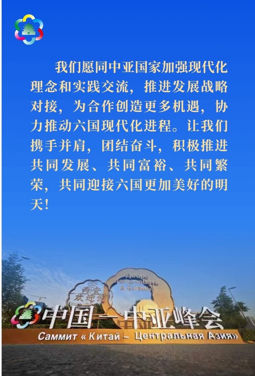 習(xí)近平發(fā)表題為《攜手建設(shè)守望相助、共同發(fā)展、普遍安全、世代友好的中國(guó)-中亞命運(yùn)共同體》的主旨講話。
