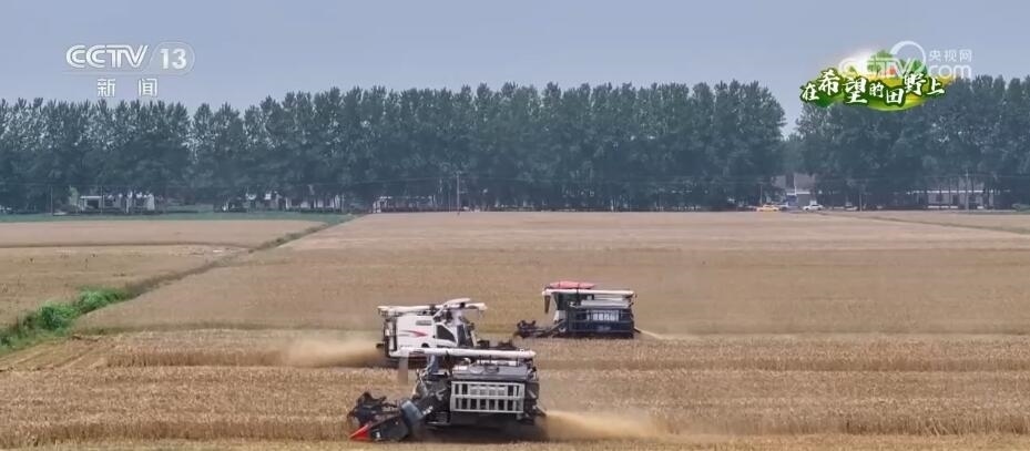 總臺記者 許偉:這里是湖北當(dāng)陽市草埠湖鎮(zhèn)的一塊示范田。我們可以看到,金色的麥穗顆粒飽滿,現(xiàn)在有5臺收割機(jī)正在麥田里面來回穿梭,收獲小麥。據(jù)了解,今年當(dāng)陽市安排了1800多臺(套)農(nóng)機(jī)具參與到夏收當(dāng)中。