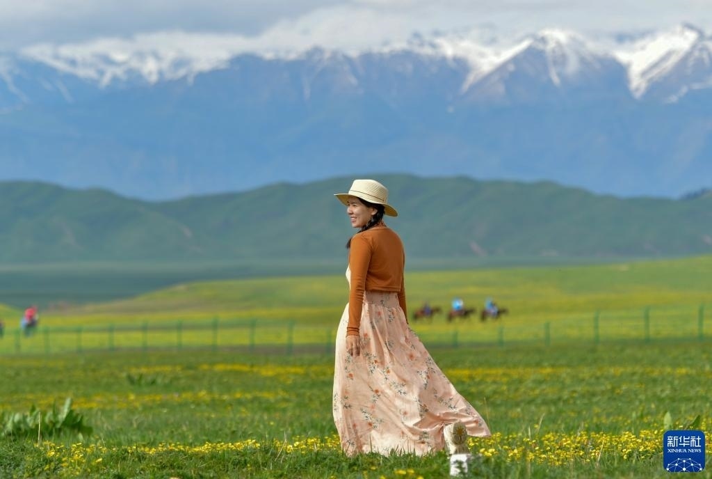 5月20日,游客在位于新疆新源縣的那拉提旅游風(fēng)景區(qū)觀光。