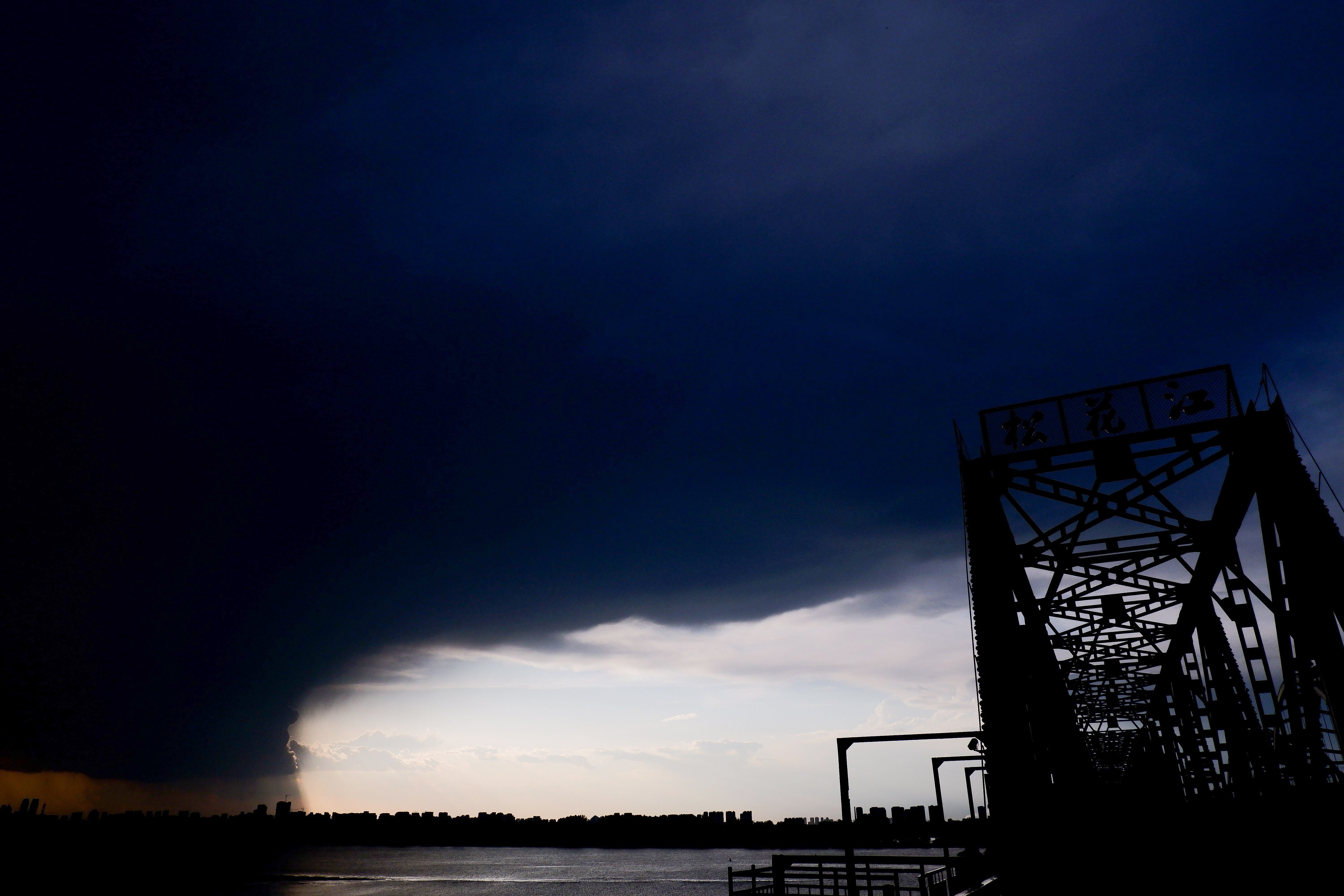 5月21日下午,黑龍江省哈爾濱市迎來強降雨天氣,整座城市被雷暴云籠罩,白晝?nèi)缫?,宛如上演科幻大片? (吳胡荼 攝)