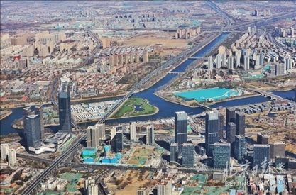 今天,古塔腳下,新城崛起。登臨五河交匯處的高樓觀景平臺,憑欄眺望,只見運河水道兩側(cè),現(xiàn)代化樓宇鱗次櫛比。這里是城市副中心運河商務(wù)區(qū)所在地,20679家注冊企業(yè)入駐、包括國家級綠色交易所在內(nèi)的一批重大項目相繼落戶,為其注入勃發(fā)生機(jī)。