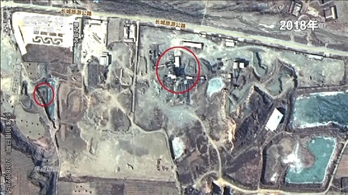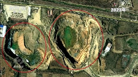 這兩個(gè)大坑真的如這位負(fù)責(zé)人所說(shuō)變化不大嗎?記者查閱了從2018年至今的衛(wèi)星圖片,上面清晰顯示:2018年,北面大坑上面原來(lái)有廠房,還有道路,南面是一個(gè)尾礦庫(kù)。2019年,地塊南北同時(shí)出現(xiàn)新挖的坑,之后這兩個(gè)坑不斷擴(kuò)大。到了2020年,北面的廠房已經(jīng)不見了,南面的坑也在變大。2021年、2022年,兩個(gè)大坑都在變大變深,逐漸靠攏,到了2023年,最終形成了現(xiàn)在的樣子。