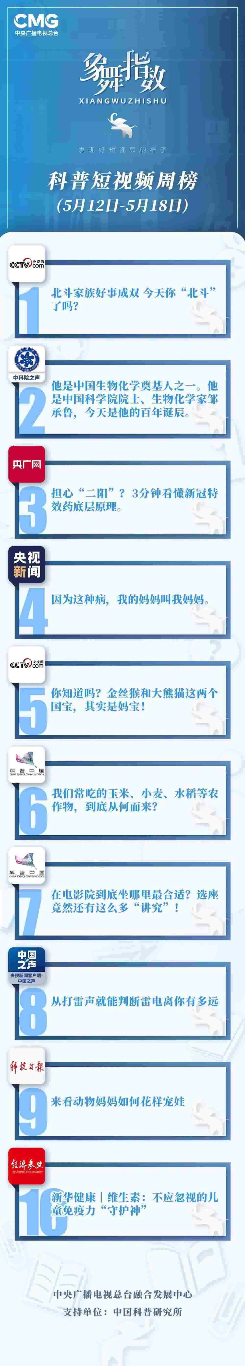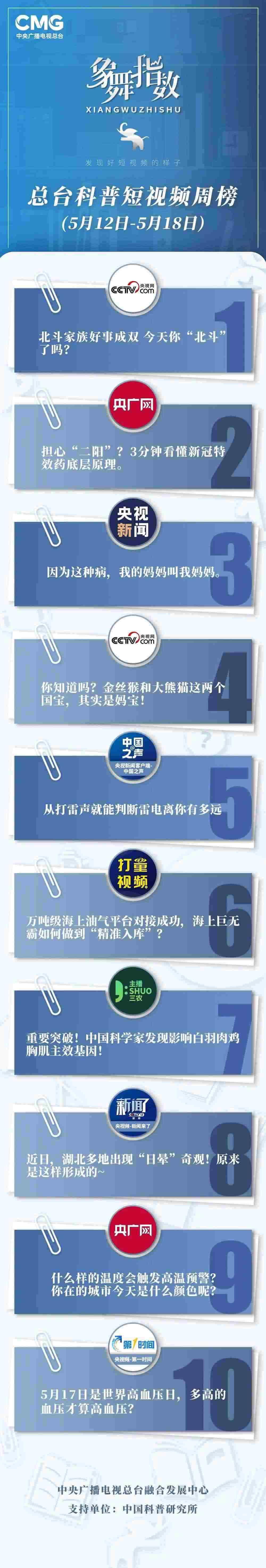 象舞指數(shù)|科普短視頻周榜(5月12日—5月18日)