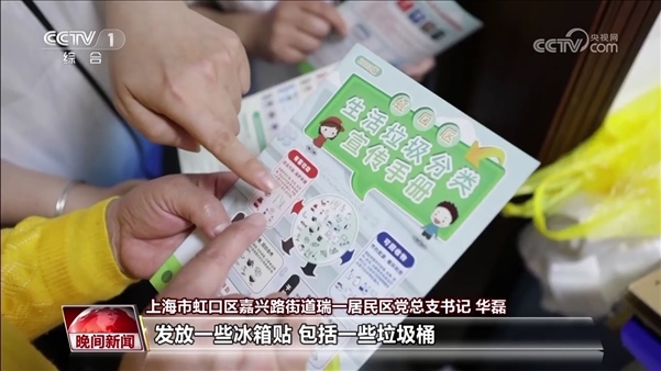 上海市虹口區(qū)嘉興路街道瑞一居民區(qū)黨總支書(shū)記 華磊:有的居民,他一開(kāi)始就是不知道這個(gè)垃圾分類是怎么分類的。那么,我們就會(huì)挨家挨戶從黨員家庭開(kāi)始做起,然后來(lái)帶頭。每個(gè)樓我們都有每個(gè)樓的志愿者來(lái)上門發(fā)放一些冰箱貼,包括一些垃圾桶,或者是小的一些蓋子等等的,來(lái)幫助大家。