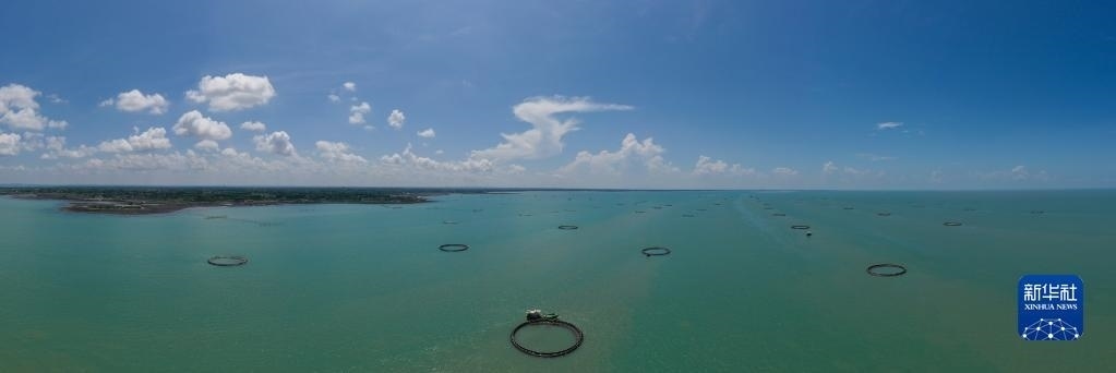 湛江徐聞西連鎮(zhèn)的“海上牧場(chǎng)”(5月27日攝,無(wú)人機(jī)全景照片)。   新華社記者 梁旭 攝