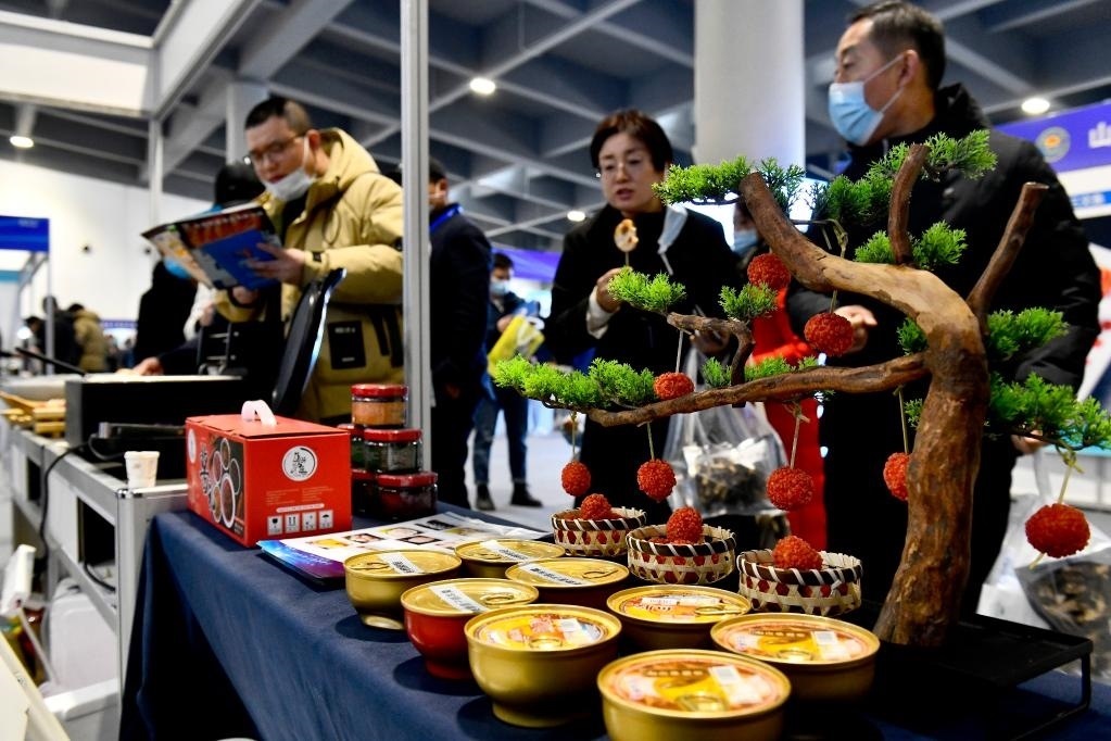 2月24日,市民在預(yù)制菜博覽會上參觀。當日,2023中國(日照)海洋食品預(yù)制菜發(fā)展大會在山東日照舉行。來自各地的海洋食品預(yù)制菜亮相預(yù)制菜博覽會。新華社記者 郭緒雷 攝