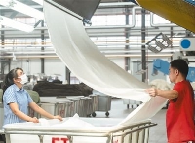 近日,在廣西梧州岑溪市大業(yè)鎮(zhèn)的西部(岑溪)創(chuàng)業(yè)園泰森新紡織產(chǎn)業(yè)集聚區(qū)某車間,染整智能生產(chǎn)線開足馬力高效作業(yè),工人們在崗位上忙碌,呈現(xiàn)出一片熱火朝天的生產(chǎn)景象。岑溪泰森項目以數(shù)字化轉(zhuǎn)型為主要發(fā)展方向,打造數(shù)字化轉(zhuǎn)型“5G+智慧工廠”行業(yè)新標桿。 何華文攝(人民視覺)