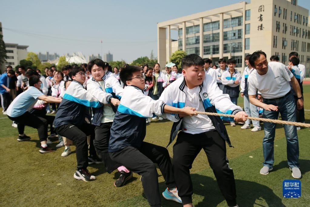 5月31日,在淮北市第十二中學(xué),高三學(xué)生參加拔河比賽。