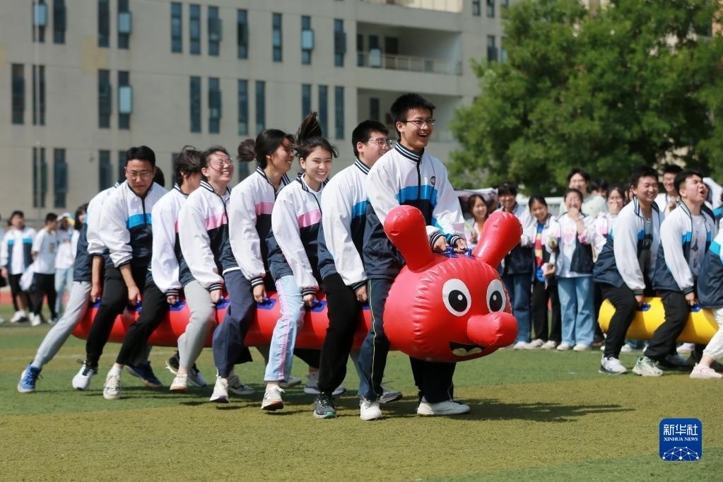 高考臨近,安徽省淮北市第十二中學(xué)組織高三年級學(xué)生開展豐富多彩的集體減壓活動,讓學(xué)生們在趣味游戲中釋放壓力,以輕松、樂觀、自信的心態(tài)迎接高考。新華社發(fā)(萬善朝 攝)