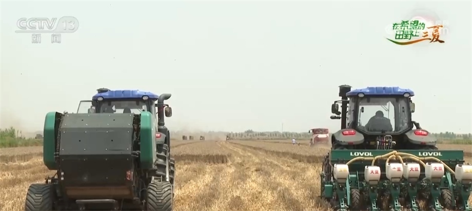 當然,確保顆粒歸倉,除了要減損,更要及時搶收。今年麥收期間,當?shù)赜錾狭撕币姷慕涤晏鞖猓?日開始預計還會有一輪降雨,所以大比武的同時,搶收也在抓緊進行,大家要抓緊這幾天的窗口期,進行24小時的搶收作業(yè)。農(nóng)業(yè)專家告訴我,在當?shù)?,降雨對于麥收的影響有兩點,一個是土地變得潮濕松軟,大型機械下地難。針對這點,當?shù)匾膊扇×舜胧?,在一些土地還沒有干透的麥田里,我們看到有不少履帶式的收割機,它們雖然體型稍小,但履帶可以避免陷入土地,還有一些無人駕駛的智慧農(nóng)機,可以解決搶收時的人手問題。這些都是當?shù)剞r(nóng)業(yè)部門按照農(nóng)戶需求及時幫助調(diào)配的。目前,阜南全縣投入聯(lián)合收割機4300多臺,組建了搶收服務隊76個、農(nóng)機維修服務隊28個,將爭取在5天內(nèi)完成全部麥收。