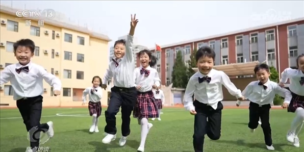 為了防止孩子過早地戴上“小眼鏡”、成為“小胖墩”,讓孩子擁有健康的體魄,近幾年,國家陸續(xù)采取了一系列具體的舉措。比如鼓勵基礎(chǔ)教育階段學(xué)校每天開設(shè)一節(jié)體育課,著力保障學(xué)生每天校內(nèi)、校外各一個小時體育活動時間。而在“雙減”政策實施后,許多學(xué)校也按照要求在課后給學(xué)生提供文藝、體育等延時服務(wù)。在北京市海淀區(qū)實驗小學(xué)九一分校,孩子們每天一節(jié)體育課,再加上上下午的課間操和大課間的體育鍛煉等等,一天之中孩子們的運動時間大約在80分鐘以上。