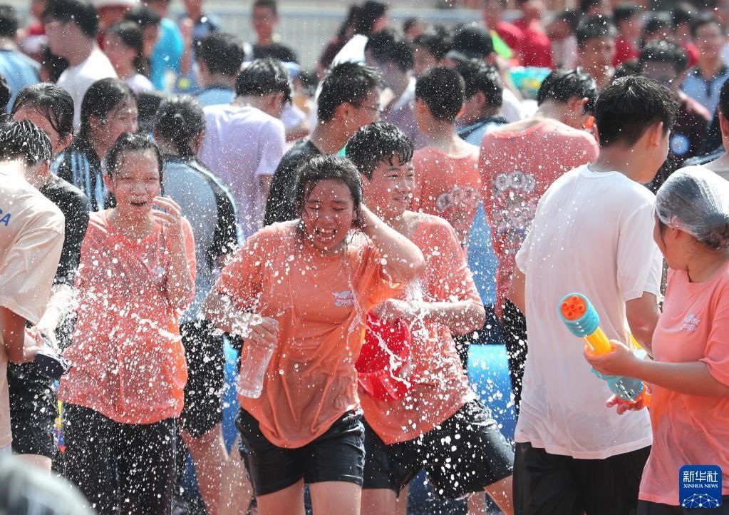 當(dāng)日,廣西南寧市第三中學(xué)初中部青秀校區(qū)組織1500多名初三學(xué)生,在校園舉行潑水活動(dòng),以獨(dú)特方式讓學(xué)生們減輕考前壓力。