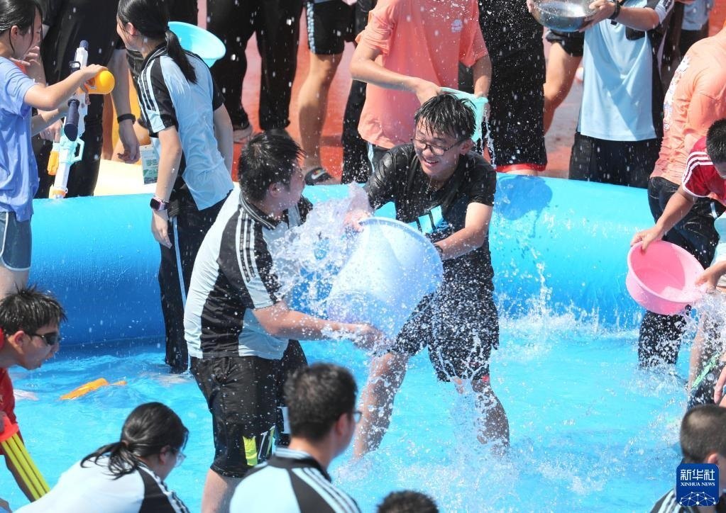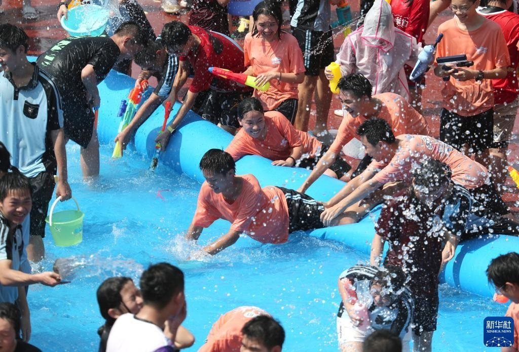 6月2日,學(xué)生們享受潑水活動(dòng)帶來(lái)的快樂。