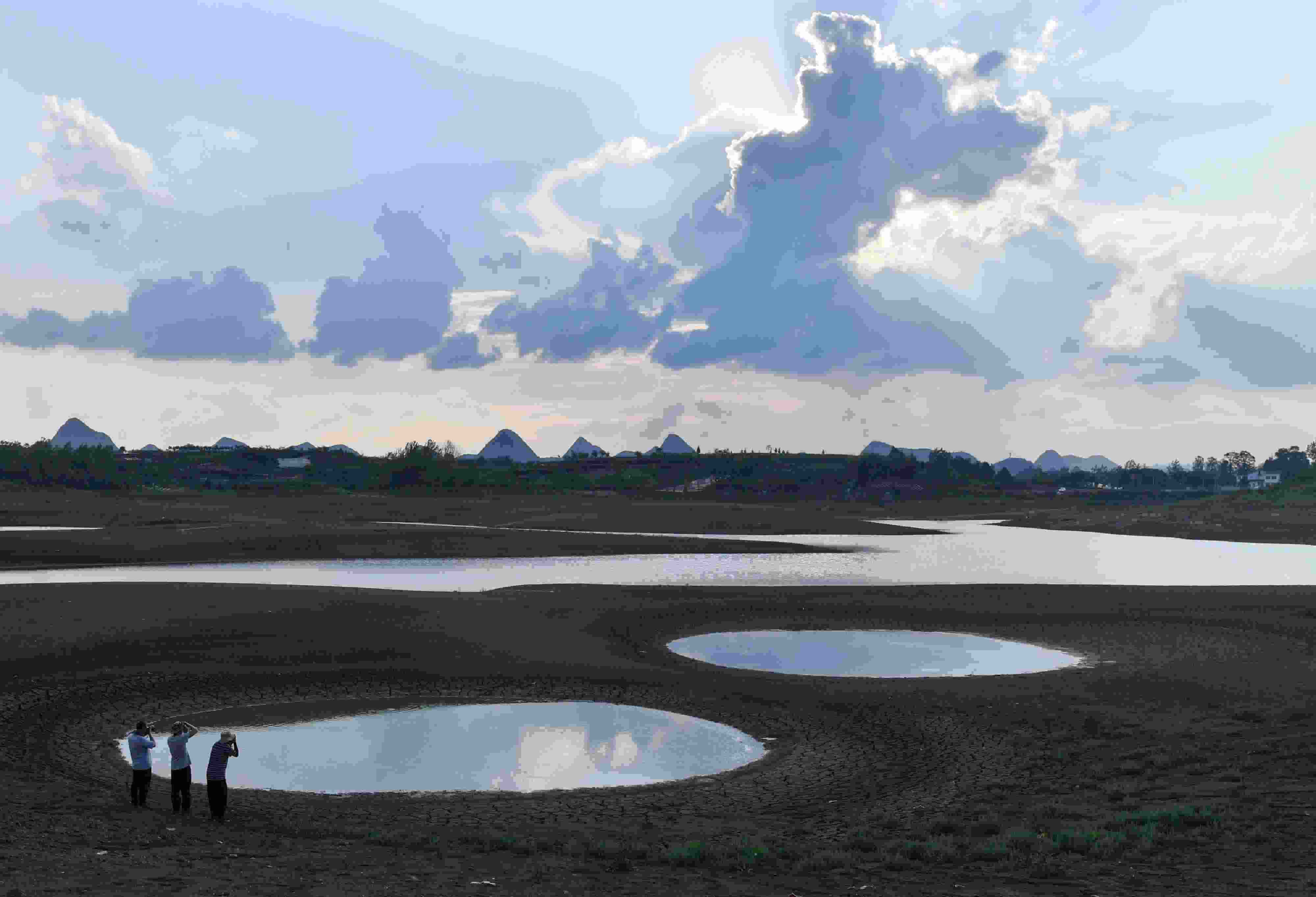 貴陽:紅楓湖水位降低 灘涂裸露
