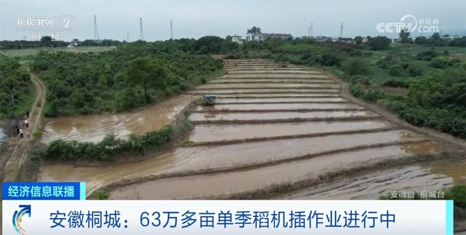 這些秧苗來自附近的育秧大棚,由于生長環(huán)境可調(diào)可控,秧苗健壯,普遍長勢良好。今年,桐城市中稻種植面積達(dá)63.5萬畝,當(dāng)?shù)赝度霗C(jī)械4000多臺套,單季稻機(jī)械化率達(dá)96%。截至目前,插秧工作已完成80%。