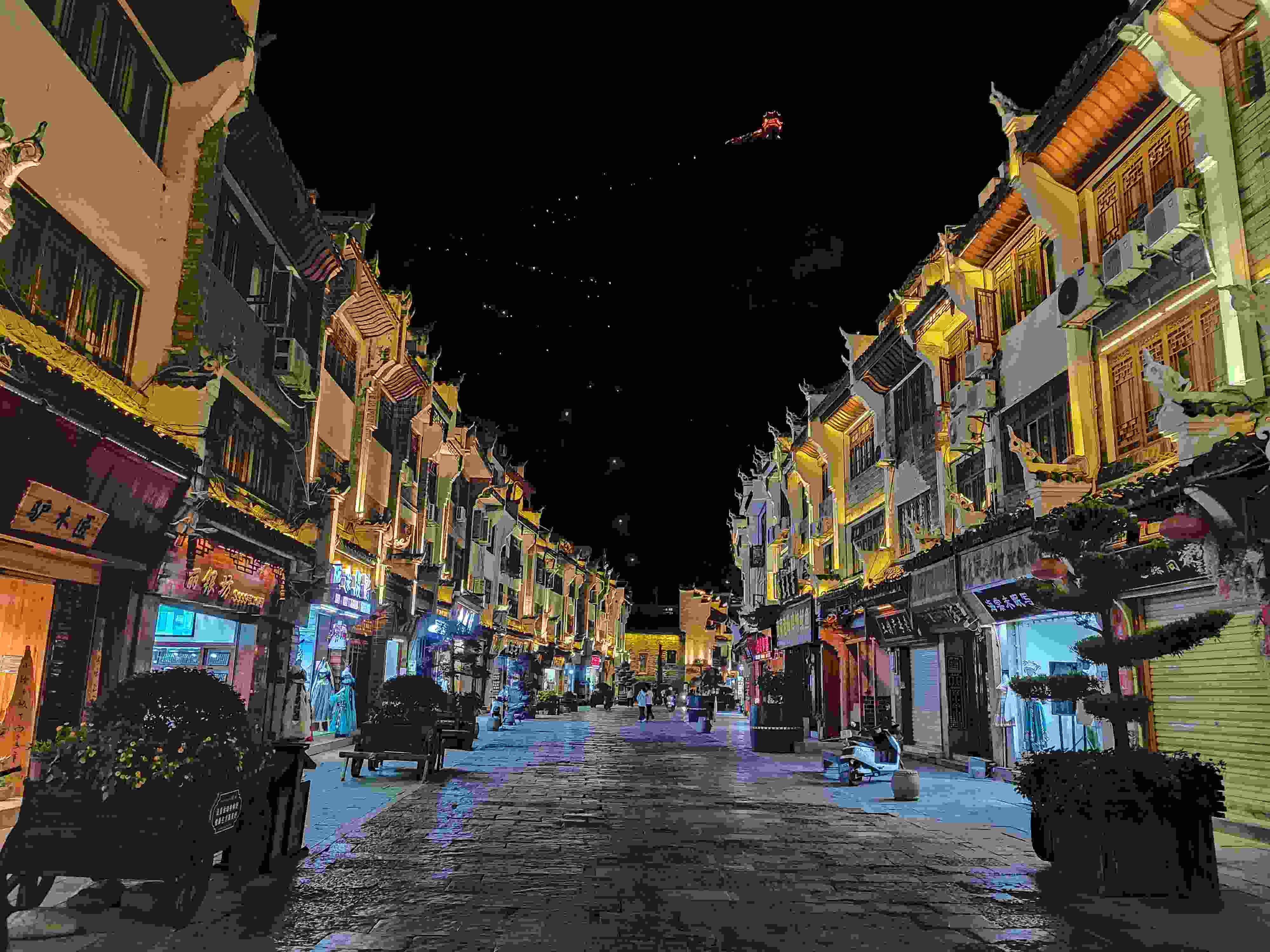 鎮(zhèn)遠(yuǎn)古城位于貴州省黔東南苗族自治州鎮(zhèn)遠(yuǎn)縣,據(jù)記載已有2280多年歷史。夜幕下的鎮(zhèn)遠(yuǎn)古城流光溢彩,璀璨奪目,宛如人間仙境。(寧堅 吳昌軍)