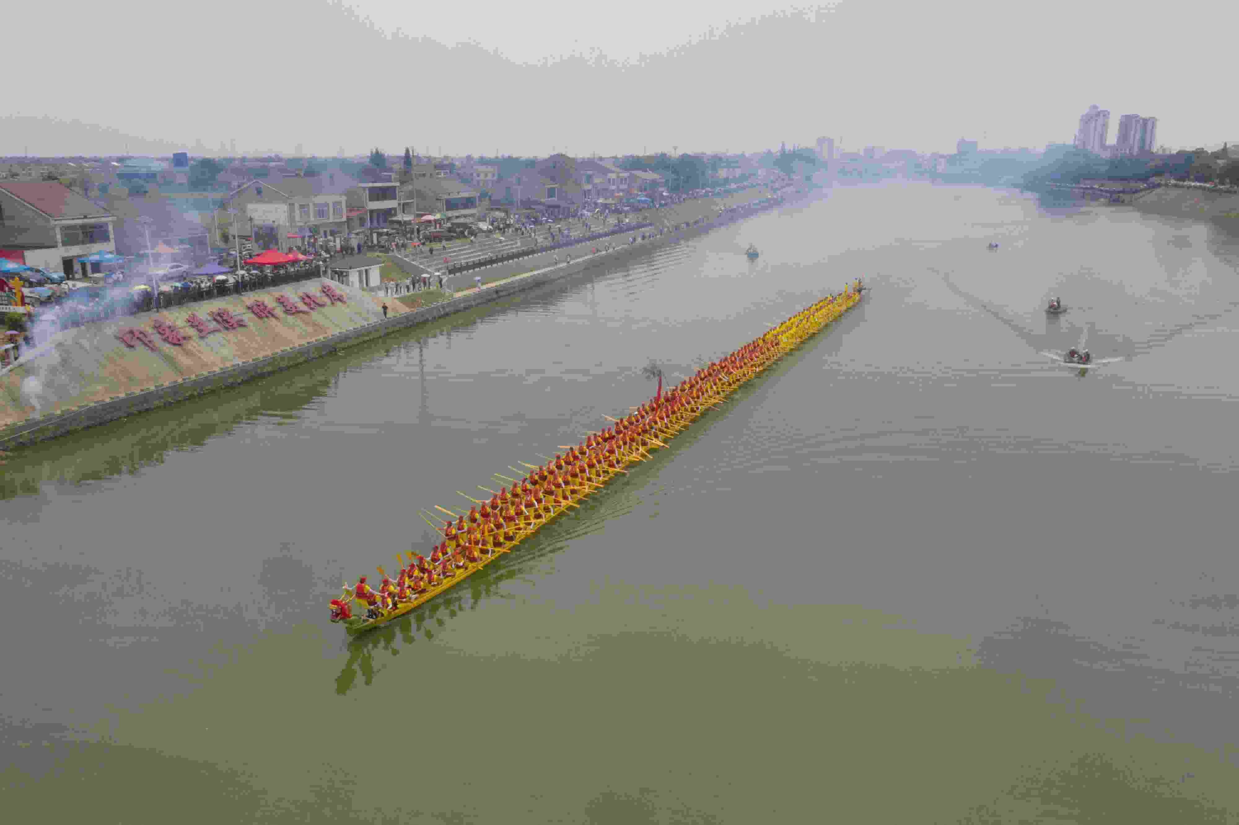 湖南益陽舉行“百米龍舟”登江儀式