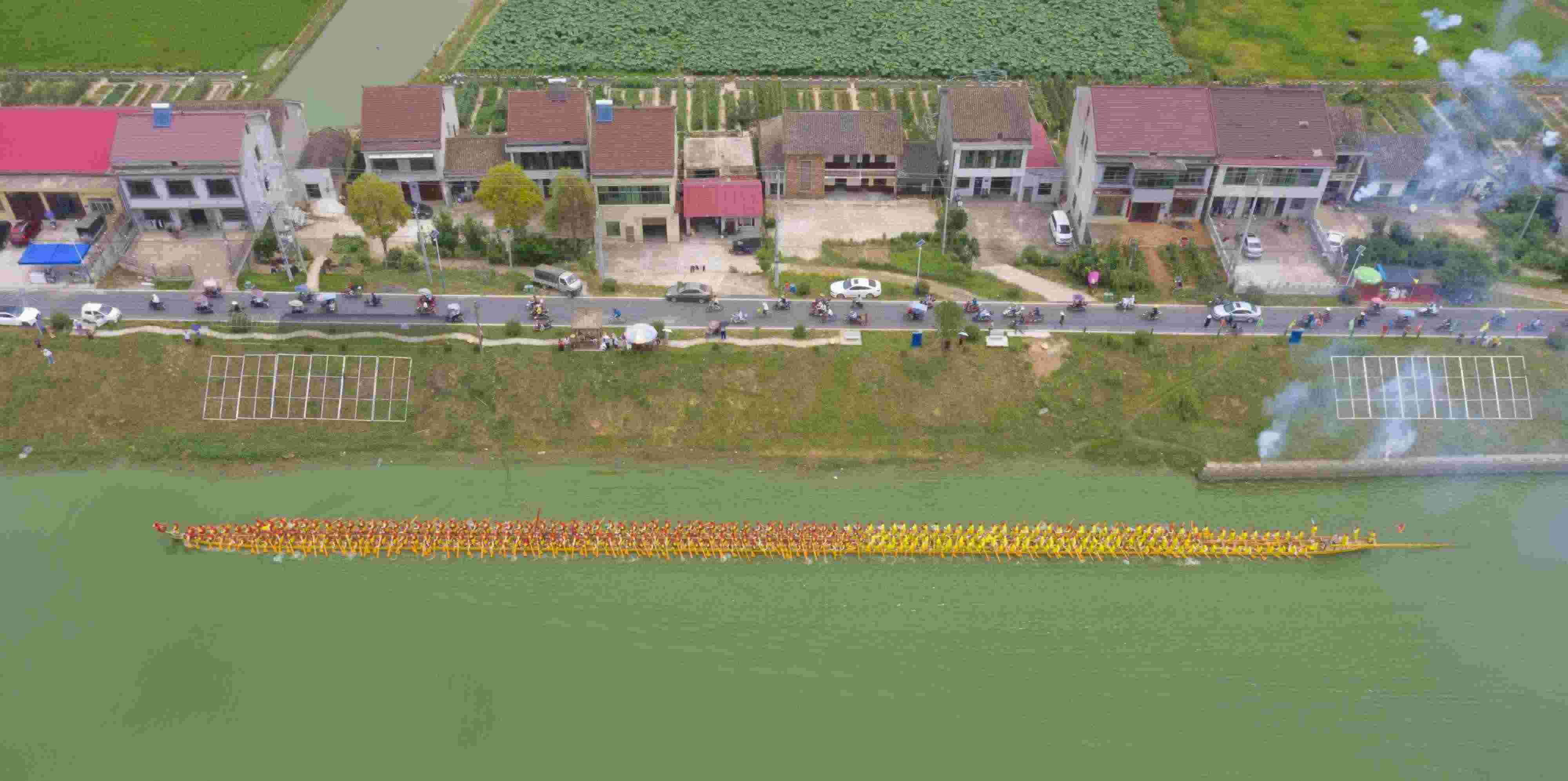 2023年6月12日,由北岸新村打造的長達99.9米的巨型雙橈龍舟在湖南省益陽市赫山區(qū)蘭溪鎮(zhèn)舉行“百米龍舟”登江儀式。