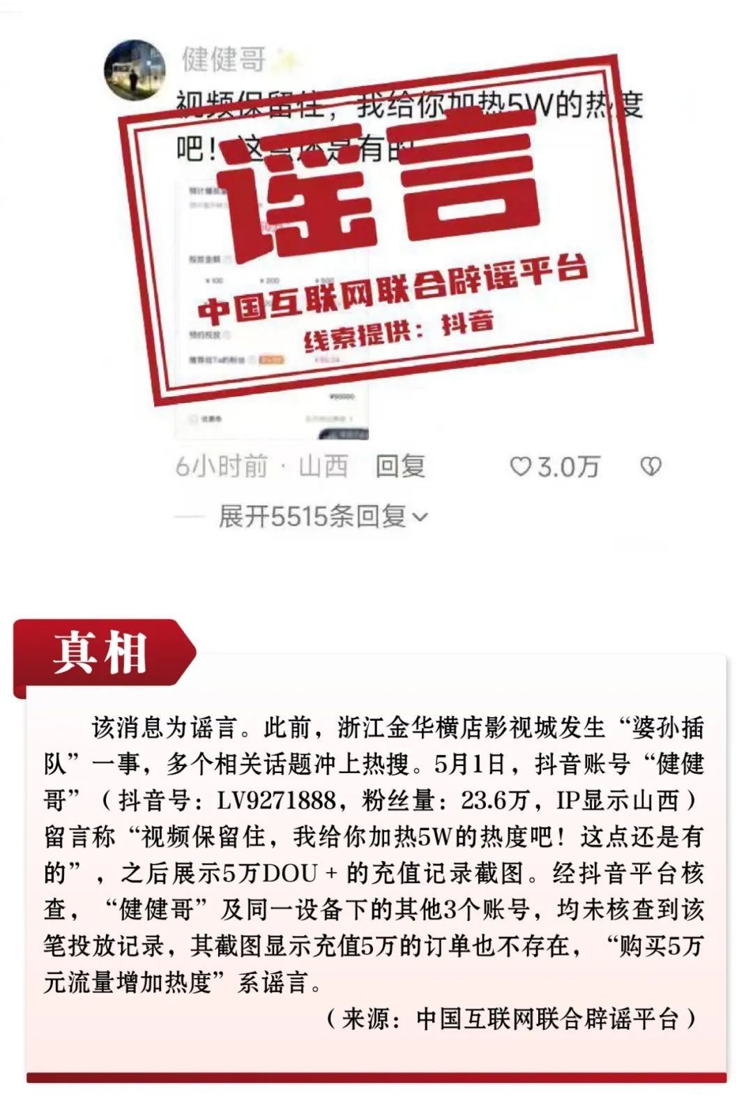 中國(guó)互聯(lián)網(wǎng)聯(lián)合辟謠平臺(tái)發(fā)布2023年5月辟謠榜
