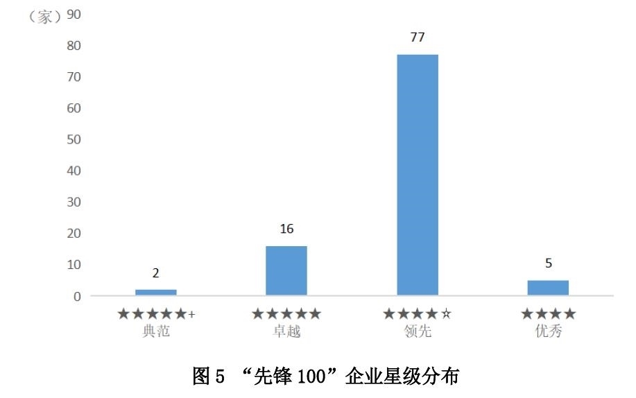 “先鋒100”企業(yè)ESG指數(shù)平均得分高達75.8分,整體處于領先水平,全面領跑中國上市公司可持續(xù)發(fā)展。其中,2家公司處于五星佳級水平,是上市公司ESG發(fā)展的典范者;16家處于五星級水平,是上市公司ESG發(fā)展的卓越者;77家處于四星半級水平,是上市公司ESG發(fā)展的領先者;5家處于四星級水平,具有優(yōu)秀的ESG整體表現(xiàn)。當前,ESG在中國已進入加速發(fā)展時期,在監(jiān)管部門、投資機構、評級機構、研究機構等多方力量的推進下,頭部上市公司對ESG的認知顯著提升,對ESG工作的重視程度日益提高。