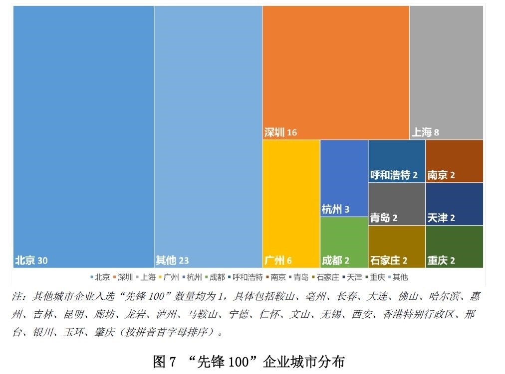 從城市維度觀察,北京、深圳、上海和廣州的“先鋒100”企業(yè)占比達到了六成左右,其中北京占比最高,北京(30家)、深圳(16家)、上海(8家)、廣州(6家)正在成為ESG建設的先行示范區(qū)。