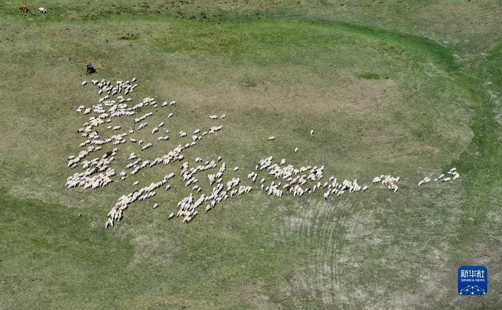 6月15日,羊群在草原上覓食(無人機照片)。