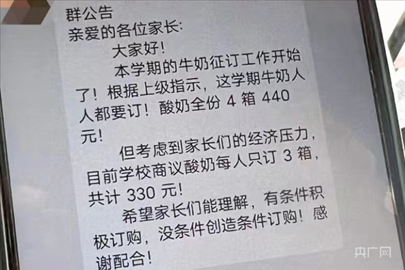 ·駐馬店正陽(yáng)縣教育局發(fā)布關(guān)于正陽(yáng)縣某學(xué)校涉嫌違規(guī)征訂學(xué)生飲用奶的調(diào)查情況通報(bào):涉事班級(jí)解讀文件出現(xiàn)偏差。處理意見:立即暫停征訂工作,進(jìn)行整頓規(guī)范,對(duì)相關(guān)責(zé)任人員進(jìn)行調(diào)查。