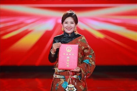 中宣部分管日常工作的副部長(zhǎng)、文化和旅游部部長(zhǎng)胡和平(左一) 教育部黨組書(shū)記、部長(zhǎng)懷進(jìn)鵬(右一) 為最美教師和最美教師團(tuán)隊(duì)頒獎(jiǎng)