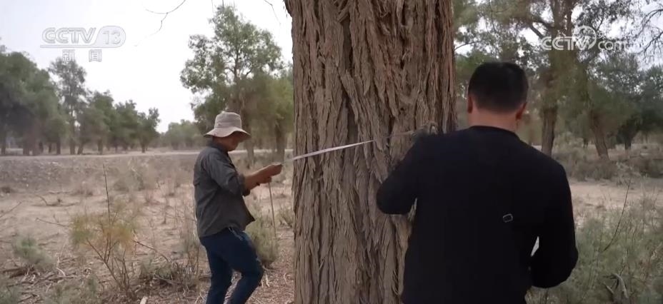 有人守護(hù)胡楊林的生長(zhǎng)環(huán)境,也有人專門記錄胡楊樹的生長(zhǎng)情況。在沙雅縣境內(nèi)的胡楊林里分布著很多超過百歲樹齡的胡楊樹,最近一段時(shí)間,新疆林業(yè)規(guī)劃院的科研人員正在對(duì)這里的胡楊林古樹群進(jìn)行調(diào)查建檔。