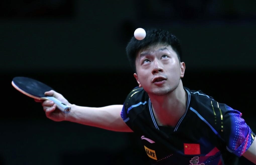 9月10日,馬龍在比賽中發(fā)球。新華社發(fā)(李相浩攝)