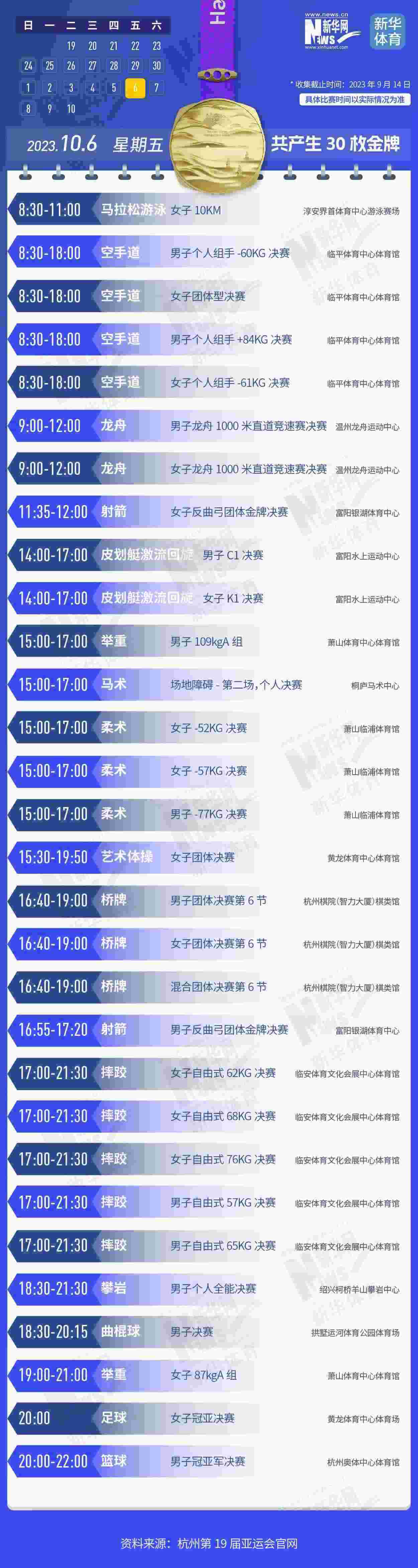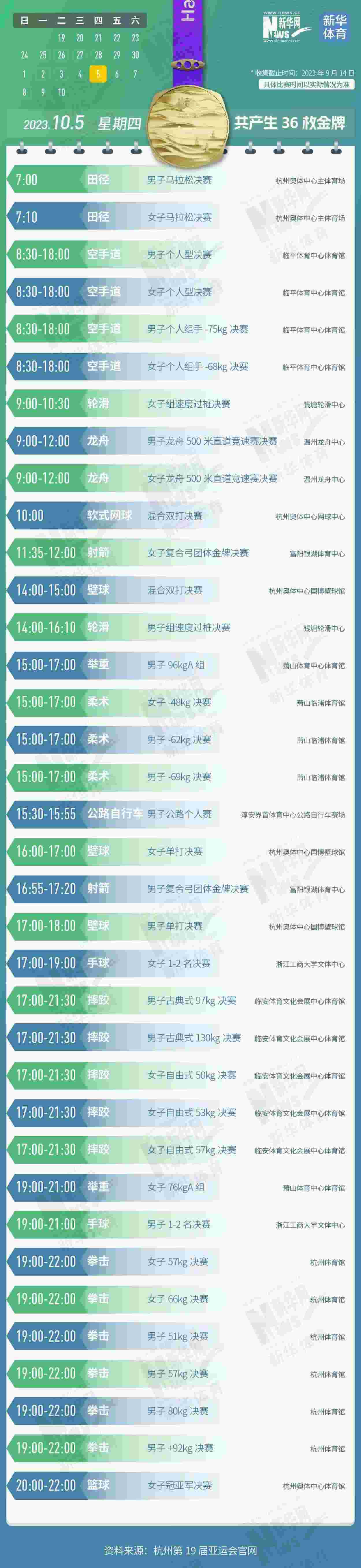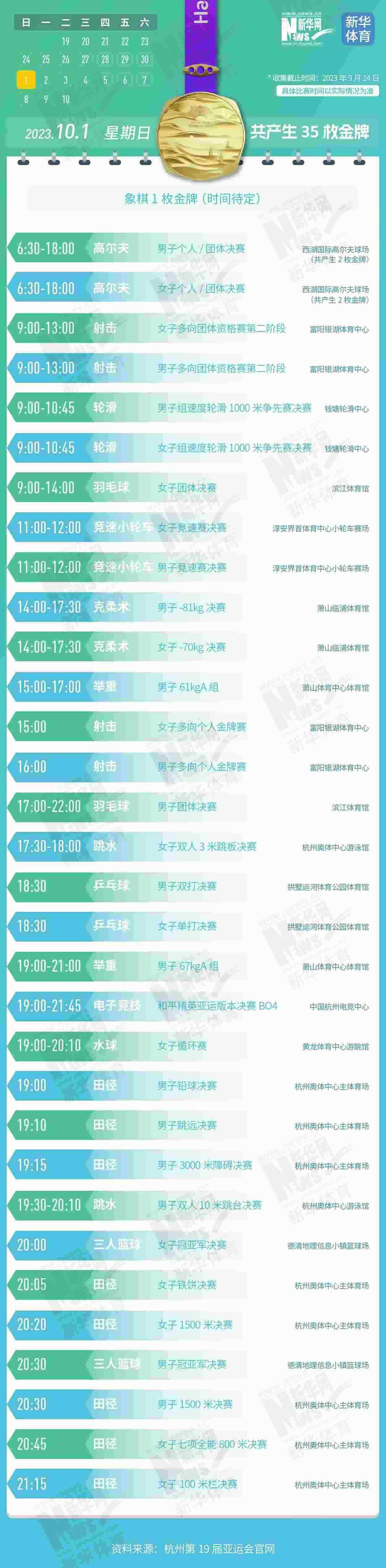 杭州第19屆亞運(yùn)會(huì)即將開(kāi)幕。本屆亞運(yùn)會(huì)將產(chǎn)生481枚金牌,快收藏這份金牌賽事日歷,助你精準(zhǔn)觀賽!