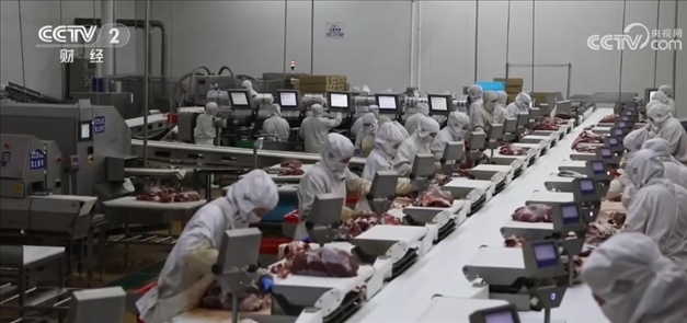 內(nèi)蒙古某公司生產(chǎn)負(fù)責(zé)人 仝林:每天有近100噸的產(chǎn)品發(fā)往上海、廣州等國內(nèi)各大中小城市及線上平臺,產(chǎn)品主要是冰鮮牛肉和深加工產(chǎn)品。