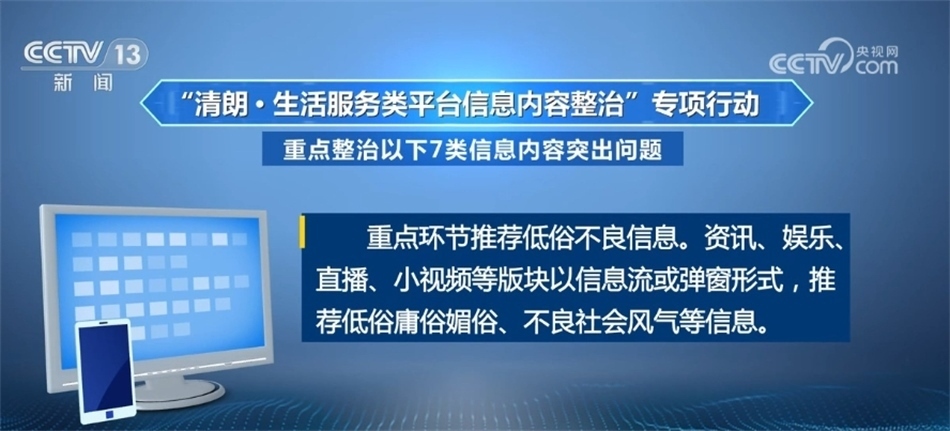 重點(diǎn)環(huán)節(jié)推薦低俗不良信息。資訊、娛樂(lè)、直播、小視頻等版塊以信息流或彈窗形式,推薦低俗庸俗媚俗、不良社會(huì)風(fēng)氣等信息?!?/p>