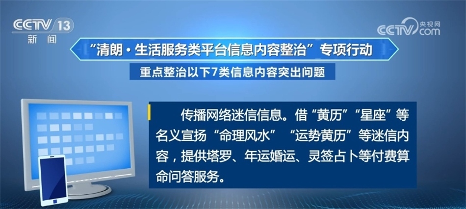 傳播網(wǎng)絡(luò)迷信信息。借“黃歷”“星座”等名義宣揚(yáng)“命理風(fēng)水”“運(yùn)勢(shì)黃歷”等迷信內(nèi)容,提供塔羅、年運(yùn)婚運(yùn)、靈簽占卜等付費(fèi)算命問(wèn)答服務(wù)。