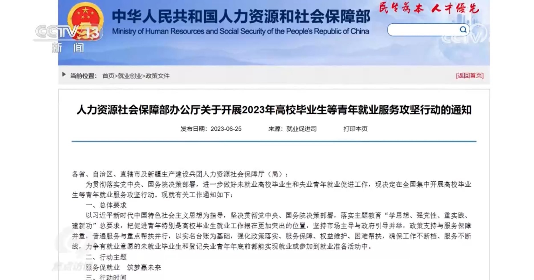 6月25日,人力資源社會(huì)保障部印發(fā)通知,部署啟動(dòng)2023年高校畢業(yè)生等青年就業(yè)服務(wù)攻堅(jiān)行動(dòng),要求省級人力資源社會(huì)保障部門7月底前,要建立2023屆未就業(yè)畢業(yè)生實(shí)名臺(tái)賬。
