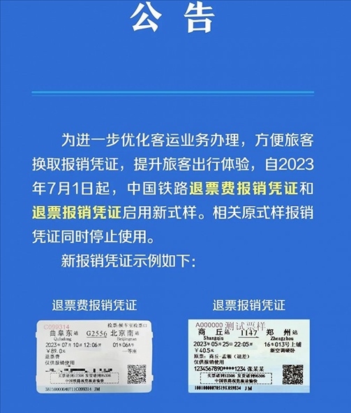 ·中國(guó)鐵路退票費(fèi)報(bào)銷(xiāo)憑證和退票報(bào)銷(xiāo)憑證啟用新式樣。